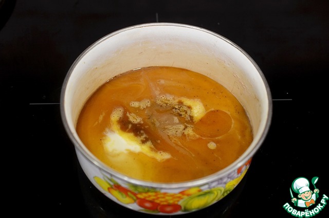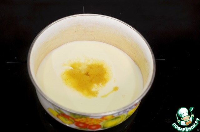 В сотейнике разогрейте молоко, влейте яичную смесь.