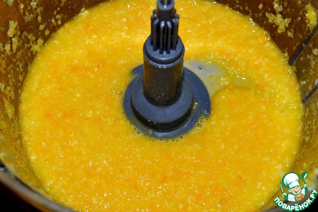 Измельчаем апельсины 1 минуту на скорости 2.