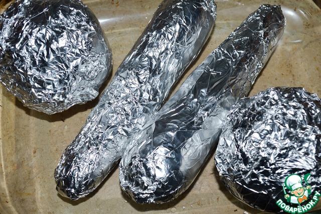 Мытую свеклу и морковь заворачиваем в фольгу и запекаем в духовке при 180 С до готовности, готовность проверяем проткнув ножом. Готовые овощи вынимаем и сразу же разворачиваем, даем им остыть.