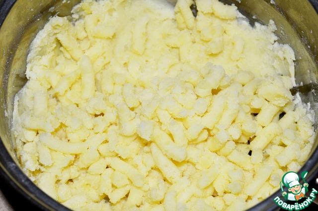 С картофеля сливаем воду, слегка остужаем так чтобы не обжигал руки. Чистим и разминаем чтобы не было комочков.