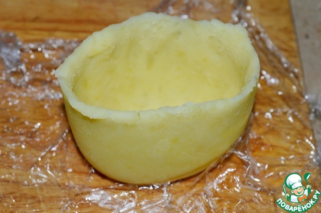 Аккуратно вытаскиваем картофельную лодочку и ставим остужаться. Проделываем это с оставшимся картофелем, стараемся работать быстро пока картофель не остыл.