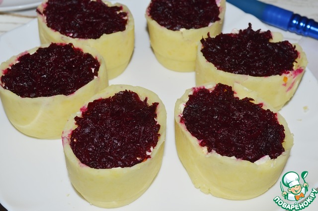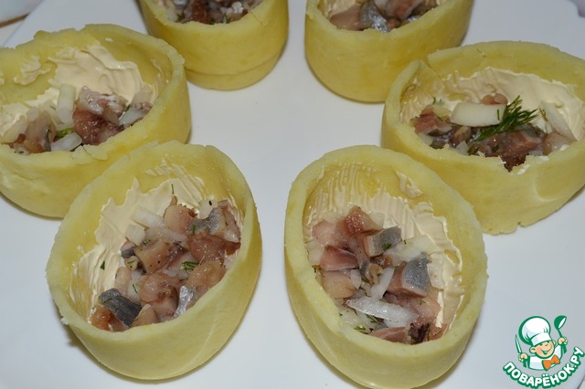 Рецепт «Сельдь под шубой в порционных лодочках»: