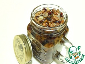 Смешать с коньяком и специями. Добавить просушенные сухофрукты, цукаты, миндаль.