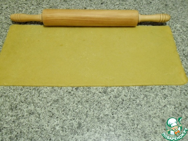Тесто очень нежное, песочное. Катать лучше в одном направление, а ни как на пельмени. -