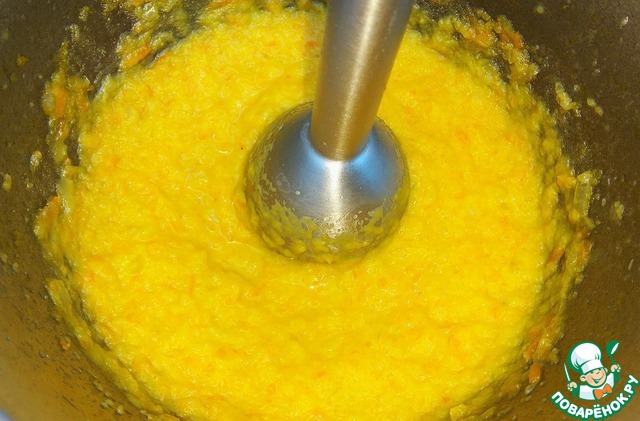 Готовую икру измельчить блендером. А можно и не измельчать, овощи очень хорошо разваренные.