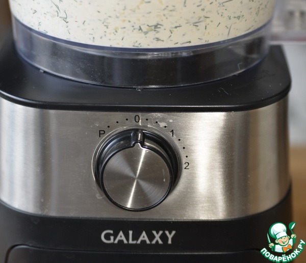 Благодаря насадке "ножи" кухонного комбайна GALAXY GL2300, несколько секунд на 1-ой скорости, и мусс из сыров и рыбы готов!