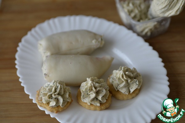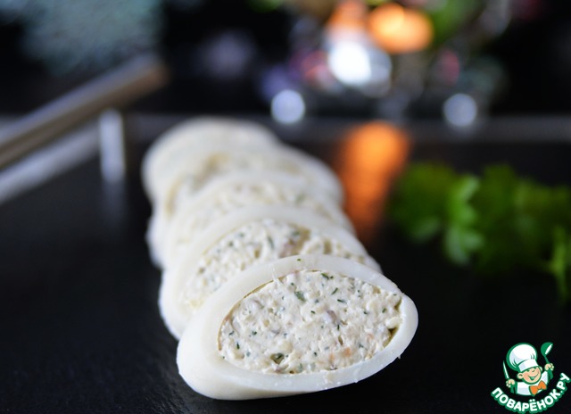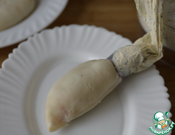 Рецепт «Кальмары, фаршированные сырным муссом»: