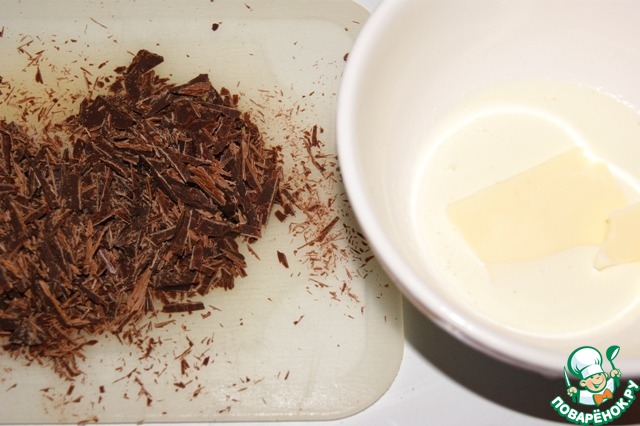Мелко нарезать шоколад. Нагреть масло и сливки ( я это делаю в СВЧ). -