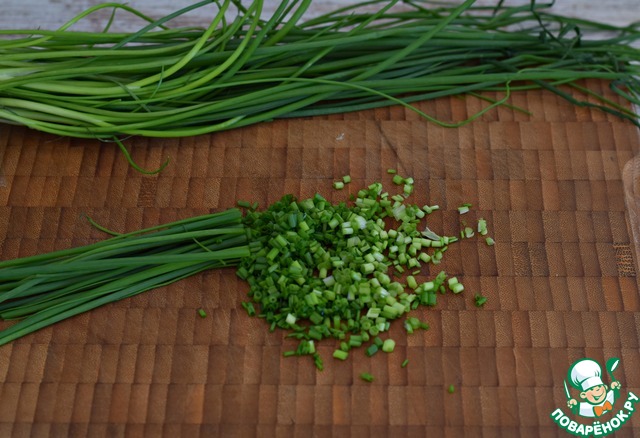 Шнитт-лук (или обычный перьевой лук) измельчить.