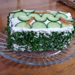 Бутербродный кекс с красной рыбой, свежими овощами и кремом из творожного сыра. Красивая, эффектная и очень вкусная закуска, которая готовится просто и быстро. Думаю, она будет весьма уместна на праздничном новогоднем столе. Попробуйте!