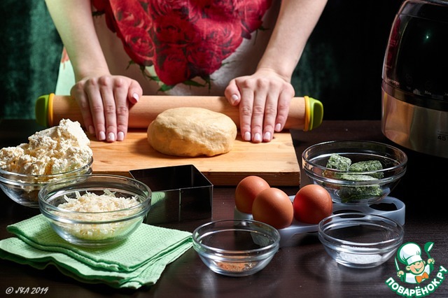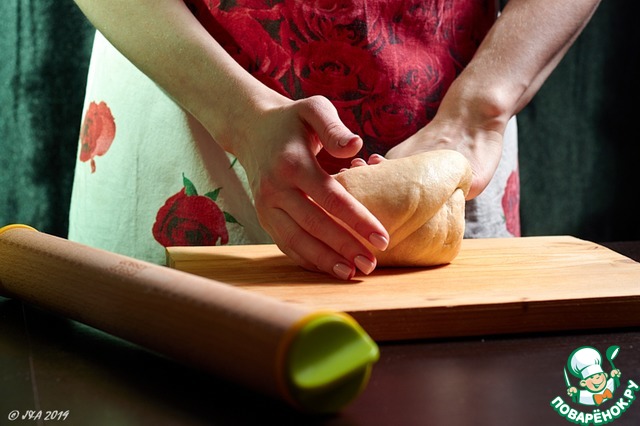 Тесту дайте согреться на столе минут 30, обомните, разделите на 4 части. С одной работайте, а три другие накройте пленкой, чтобы не сохли.