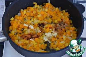 Перемешать овощи со специями и готовить все вместе еще пару минут.