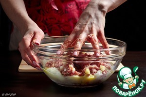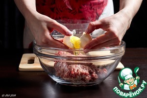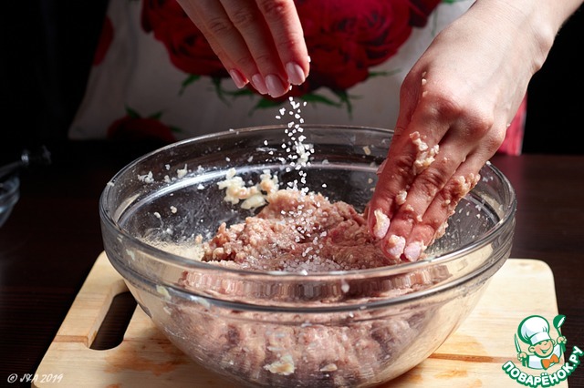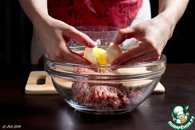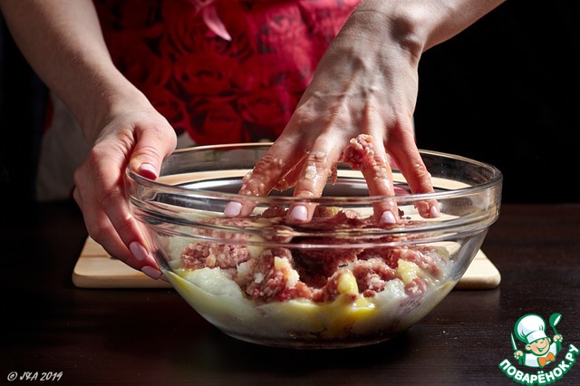 - Фарш мясной (смесь говядина/свинина 1:1) — 450 г