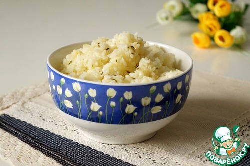 Рис обогащённый ароматами шафрана, чеснока и тимьяна. Шафран придаёт рису цветочный аромат и светло-жёлтый цвет.