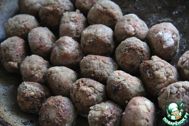 Шарики из фарша обвалять в муке и обжарить на растительном масле около 5 минут.