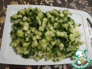 Мелко режем укроп, добавляем его к огурцам и яйцам.