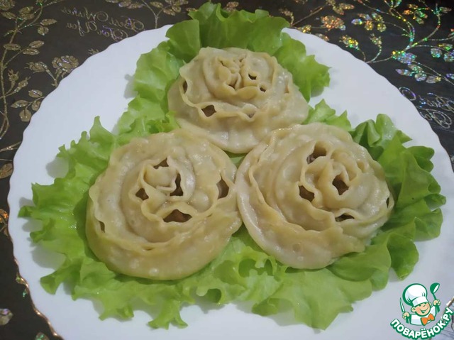Как идеальную пару нашей овощной лужайке приготовим манты-розочки.
