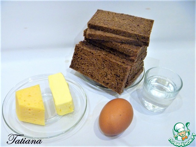 Ржаной хлеб (кусочками)поместите в чашу комбайна, также измельчите в мелкую крошку. Добавьте в хлебную крошку измельченный сыр, мягкое масло, яйцо.
