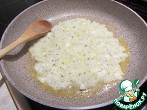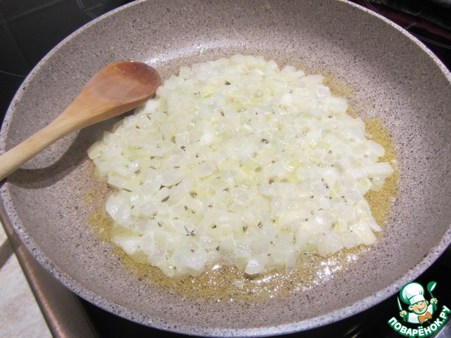 Растапливаем сливочное масло, шинкуем лук и обжариваем его до прозрачности.