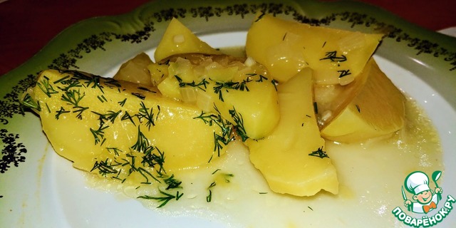 Если нужно, доливаем в сковороду столько воды, чтобы она покрывала картофель.