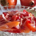 [+5]Ловите отчёт! Очень вкусный, тонкий, неизбитый, аристократичный салат! Я очень люблю такие сочетания, поэтому это мой рецепт. Я уже готовила похожий салат, но с авокадо вместо помидор , поэтому сразу вдохновилась приготовить и Ваш. И как только прикупила недостающие красный лук и гранат, сразу и приготовила. Жаль только, что вкусная хурма у нас только пару месяцев. А сюда конечно нужна вкусная хурма, чтобы насладиться вкусом. Спасибо, Вадим, за чудесный рецепт, за удовольствие , за праздник вкуса!