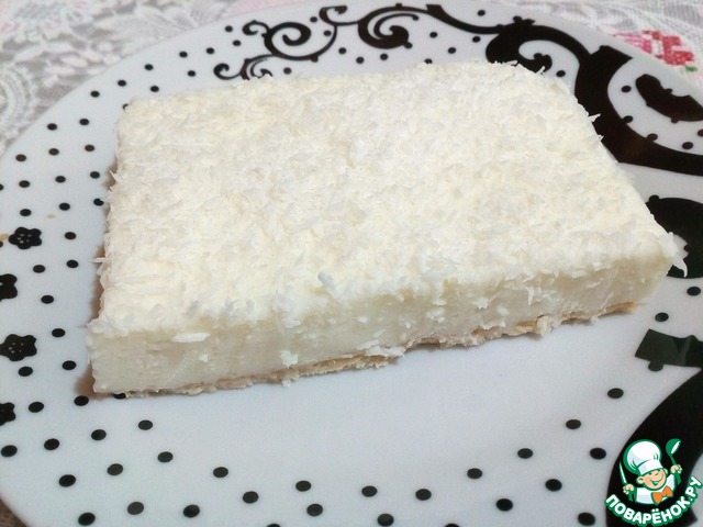 Кокосовую посыпку выложить на творожную массу и отправить в холодильник на ночь.