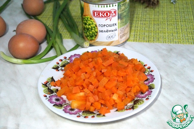 Кубиками нарезать очищенную морковь
