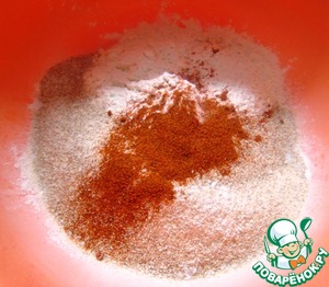 Тесто: в миске соединить два вида муки, щепотку соли и паприку. Перемешать.