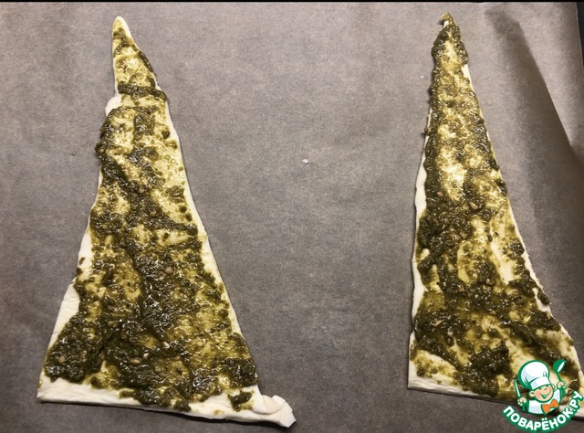 На первый треугольник выкладываем песто.