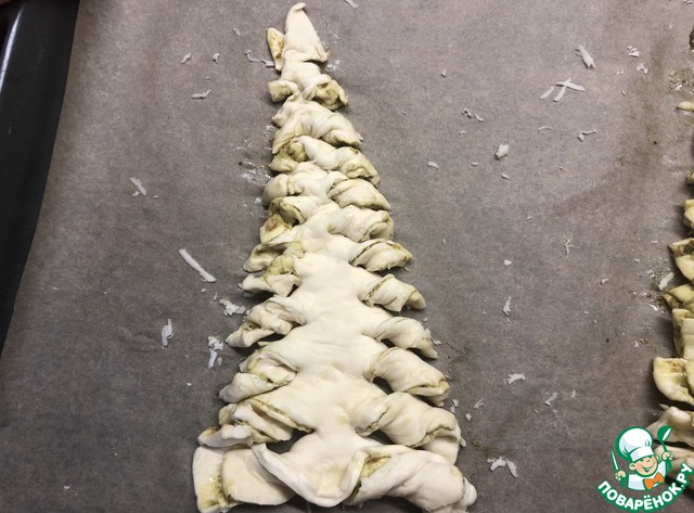 Очень вкусный пирог в популярной новогодней формовке. Готовится очень просто, из трёх ингредиентов, но тем не менее, получается очень вкусно. Меня очень приятно удивило сочетание песто и слоёного теста, обязательно попробуйте!