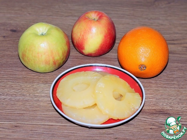 Яблоки и апельсин очищаем от кожуры. Яблоки нарезаем большими дольками, апельсин очищаем от пленок.