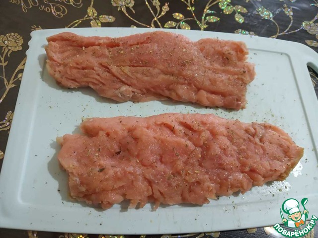 Филе рыбы моем и промокаем бумажным полотенцем. Натираем солью и приправой для рыбы (я использую уже готовую смесь, которая продаётся в магазине).