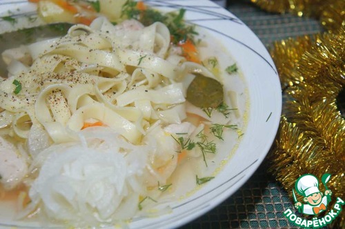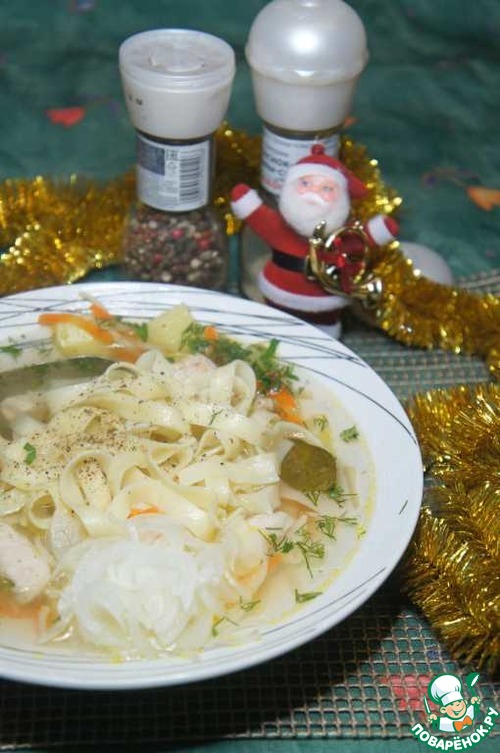 Вот такую лапшу я теперь использую. Очень вкусная. Стоит 25 рублей за 100 г. Упаковки по весу разные, от 200 до 250 г. Но можно сделать и домашнюю.