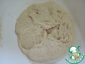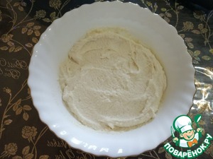 • В кефир с манкой добавляем масло с сахаром, разрыхлитель, щепотку соли, муку и тщательно перемешиваем до однородного состояния.