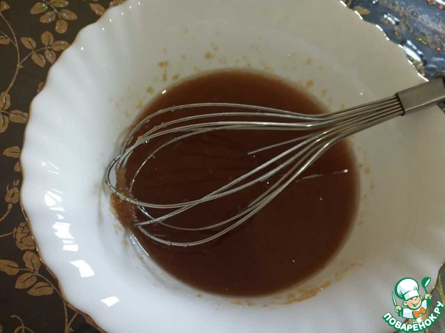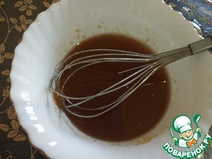 • Ванилин (ванильный сахар) и тростниковый сахар добавляем в растительное масло и хорошо перешиваем венчиком.