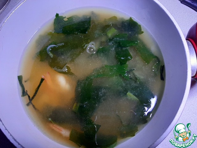 Отдельно в 100 мл бульона Даши развести мисо-пасту.