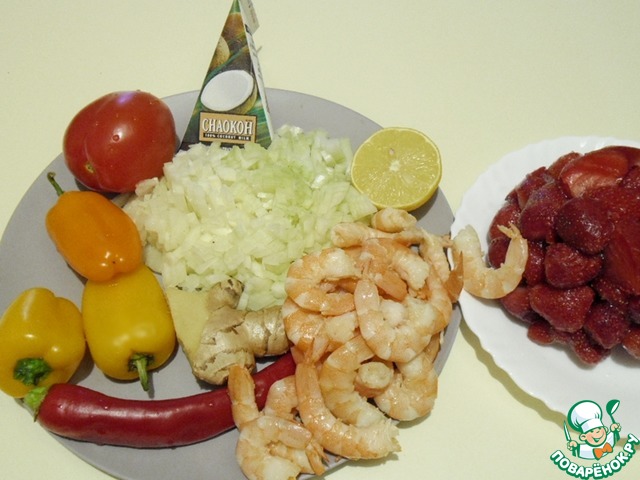 Для романтической встречи Нового Года приготовьте креветки в остром, пикантном, на кокосовом молоке соусе. Праздничное настроение блюда усилит клубника. Впервые готовила соус на кокосовом молоке! Получилось фантастически вкусно!