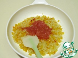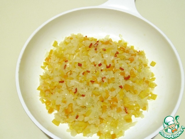 В нагретом масле пассеровать лук и перец 5-7 минут.