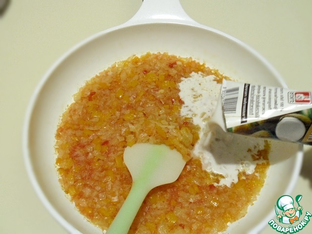 Влить кокосовое молоко, сок лимона, добавить имбирь, варить 5 минут.