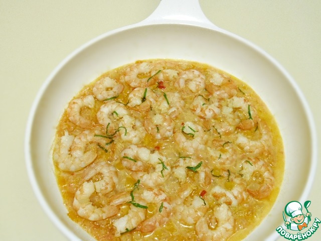 Если у вас креветки не вареные - добавив их в соус, варить 3 - 4 минуты.