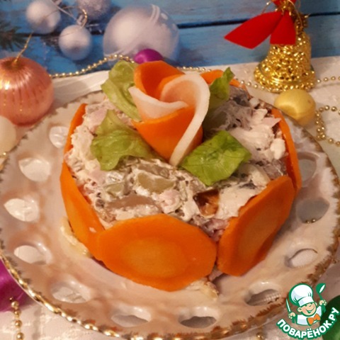 По желанию можно украсить кружочками моркови. Будет очень эффектно смотреться на праздничном столе.