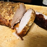 Свинину моем, обсушиваем бумажным полотенцем и натираем приготовленной смесью.