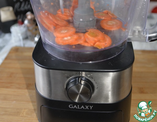 Приготовить этот паштет мне помог кухонный комбайн GALAXY GL2300. Благодаря его насадке для нарезки ломтиками, я нарезала тонкими кружками морковь. А с помощью ножей измельчила быстро массу в паштет.