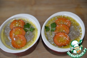 Кстати, про паштетницы: есть у меня из прозрачного стекла, дешёвая такая в виде курочки сверху овального основани. И вот в такой курочке паштет, залитый сверху ярким желе, смотрится вообще шедевром.