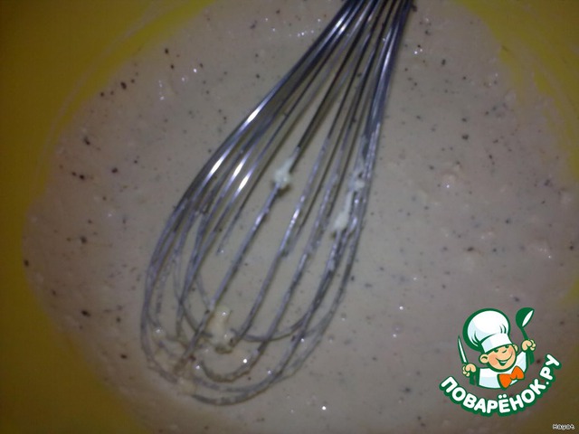 Смешиваем : сметану+разрыхлитель+яйца+воду+сахар+ваниль+нескафе+маргарин. Все хорошо взбиваем.