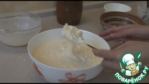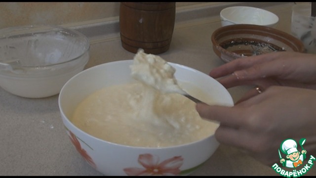 Берем яйца, добавляем к ним кисломолочный продукт, это может быть кефир, несладкий йогурт или ряжанка, соль, сметану, разрыхлитель, подсолнечное масло, хорошо перемешаем.