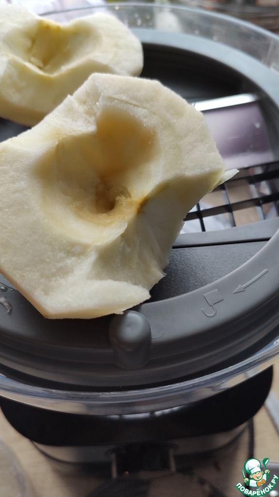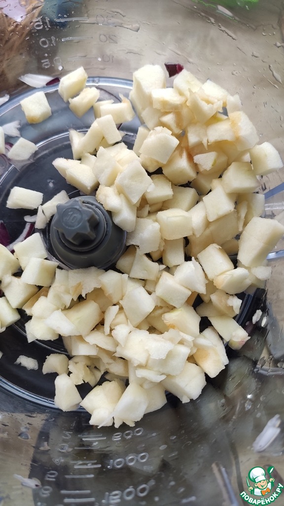 Яблоко почистила, вырезала семена, на комбайне поменяла насадку, поставила кубики, нарезка.