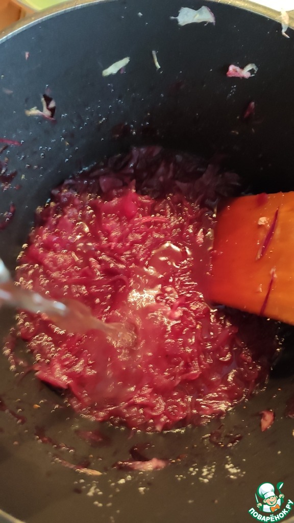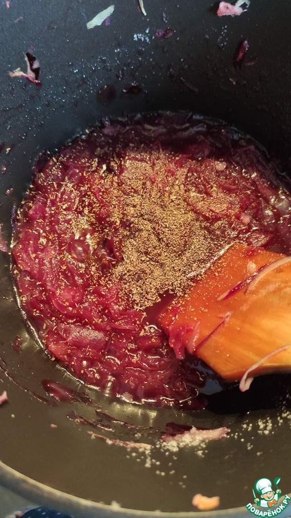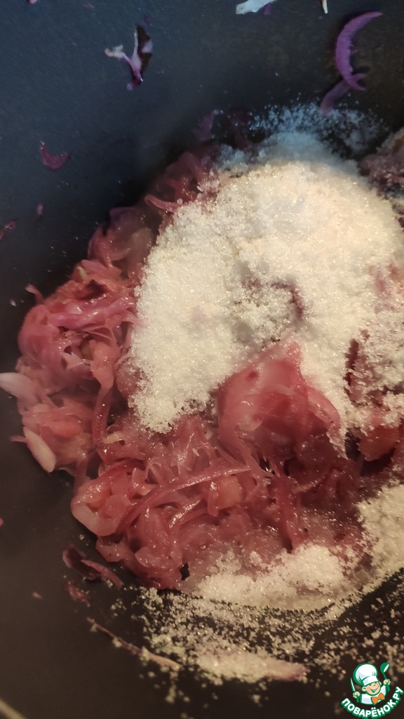 Добавляем сахар, уксус, доводим до бурления, варим 15 минут.
