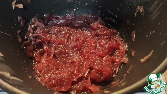 Закрываем крышкой и на самом медленном огне, иногда помешивая варим около 2 часов. Масса станет густой и насыщенной.