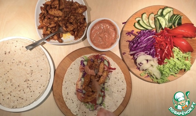 Ингредиенты для «Тортилья с курицей и овощами»: